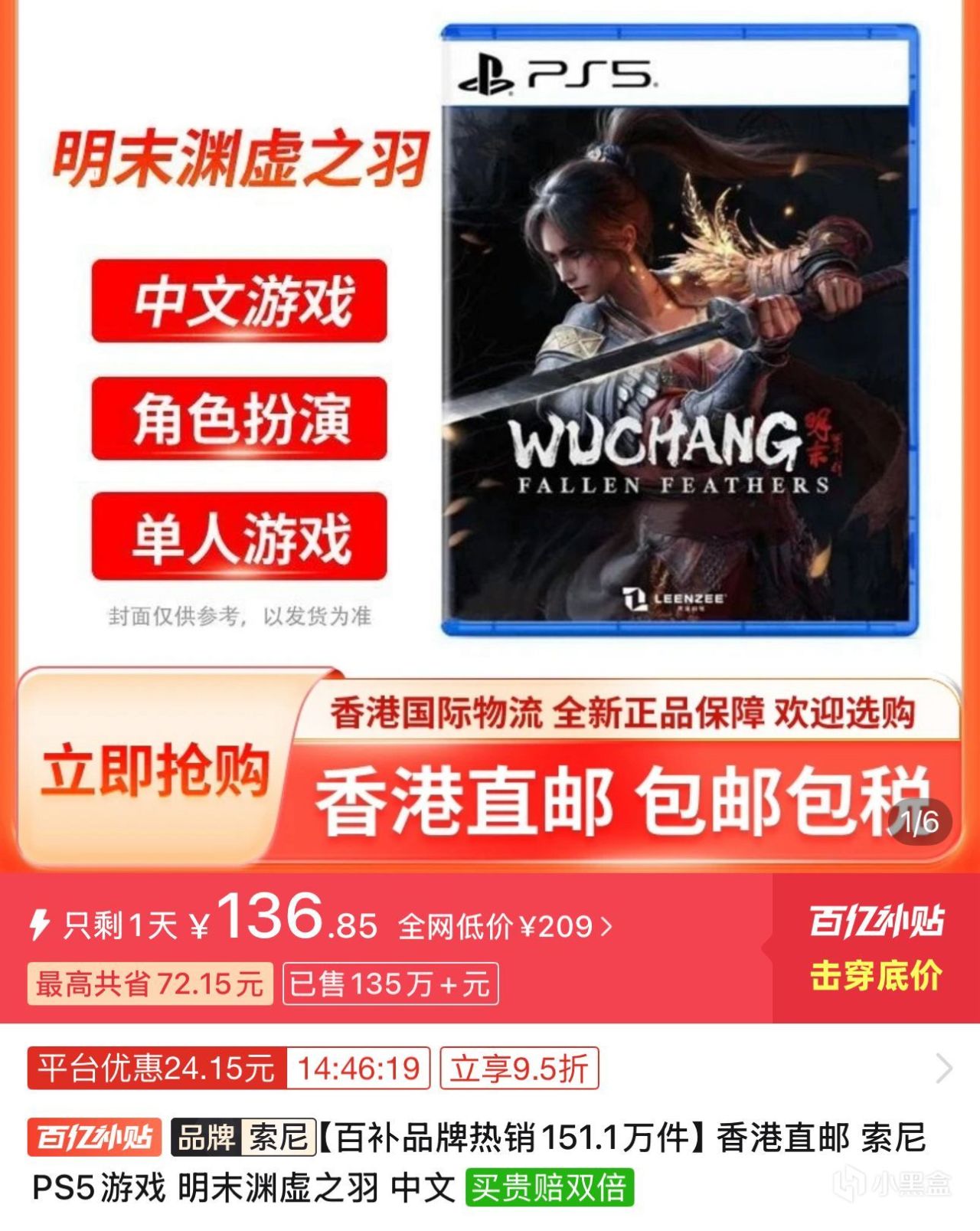 3.PS5《明末:渊虚之羽》欧美版中文136.85元全新包邮,目前行情价一路下跌,在现在节奏飞起的情况下,我猜到9月应该可以到99元全新包邮,这只是时间的问题。