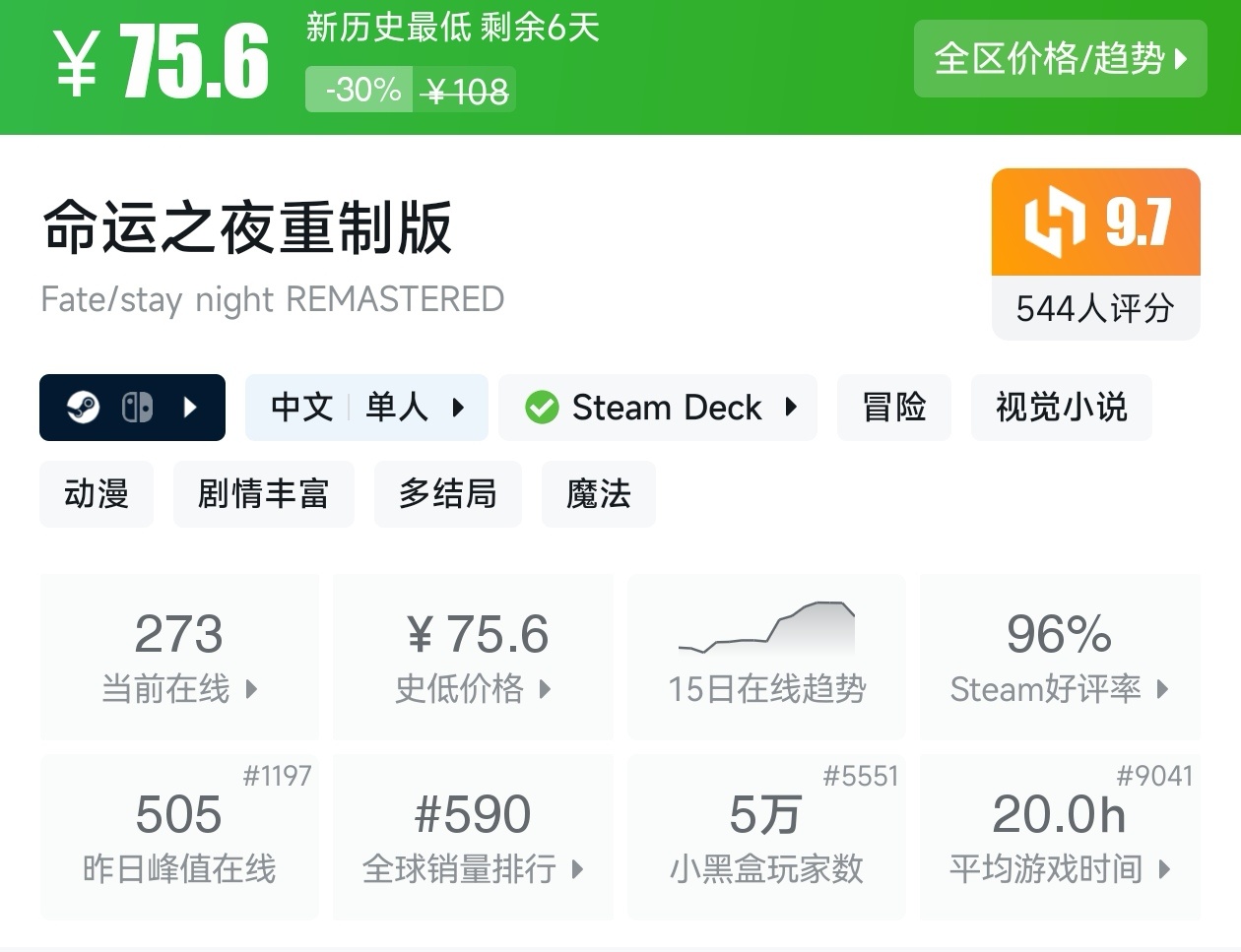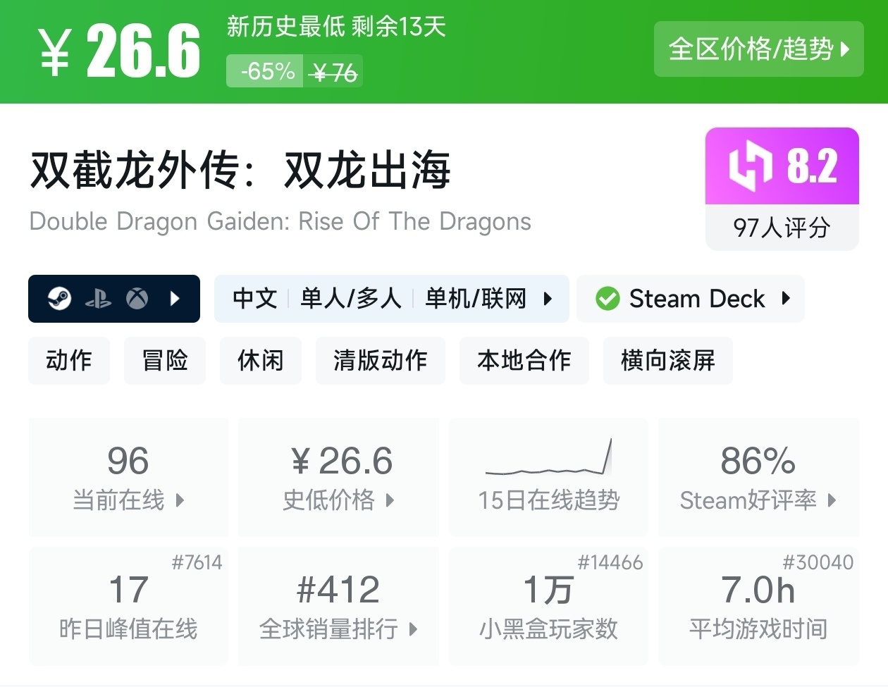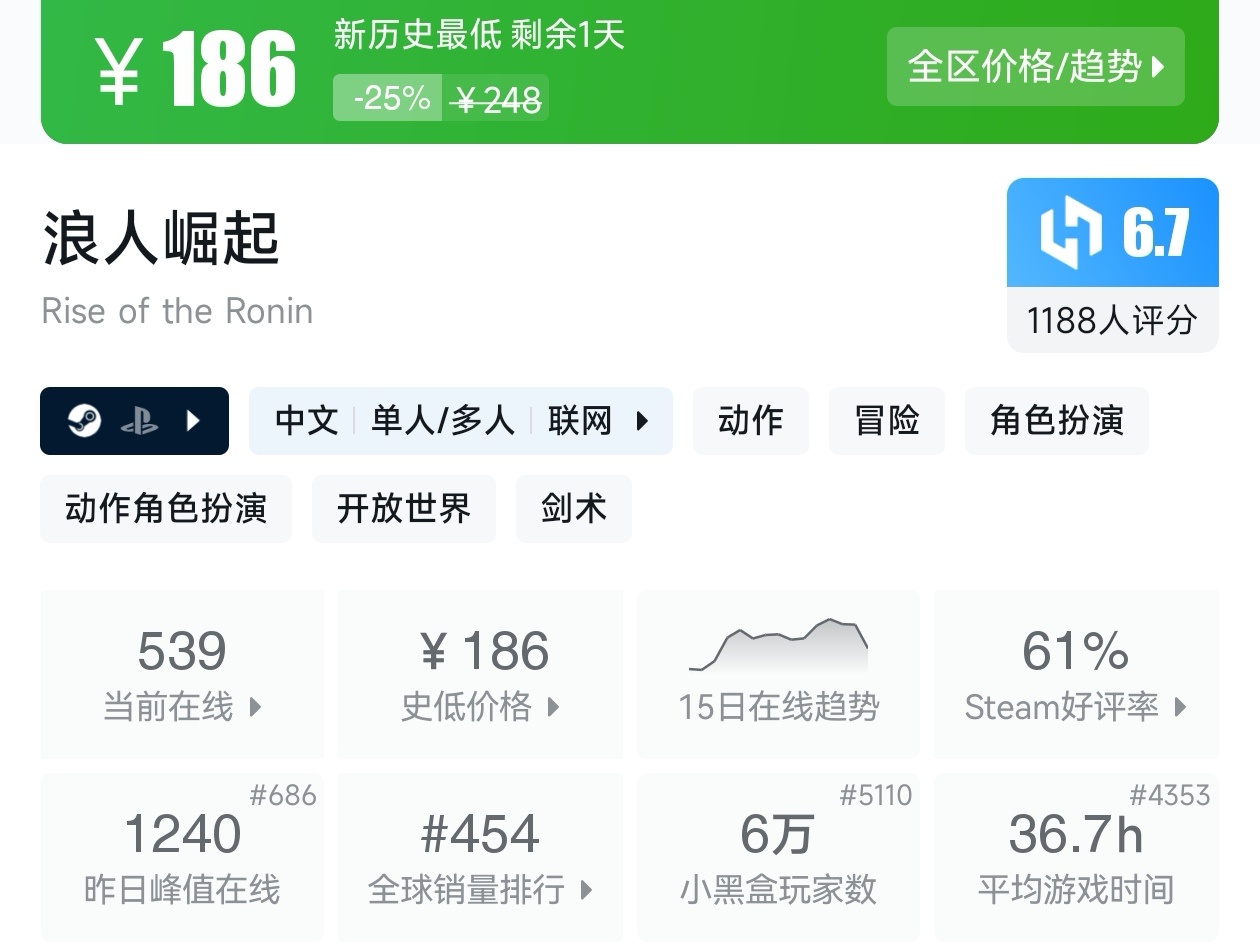 游戏永降后第一次的打折,格斗游戏现在最顶级的存在,很适合作为新手的入坑作,游戏也第一次将格斗游戏与开放世界结合。