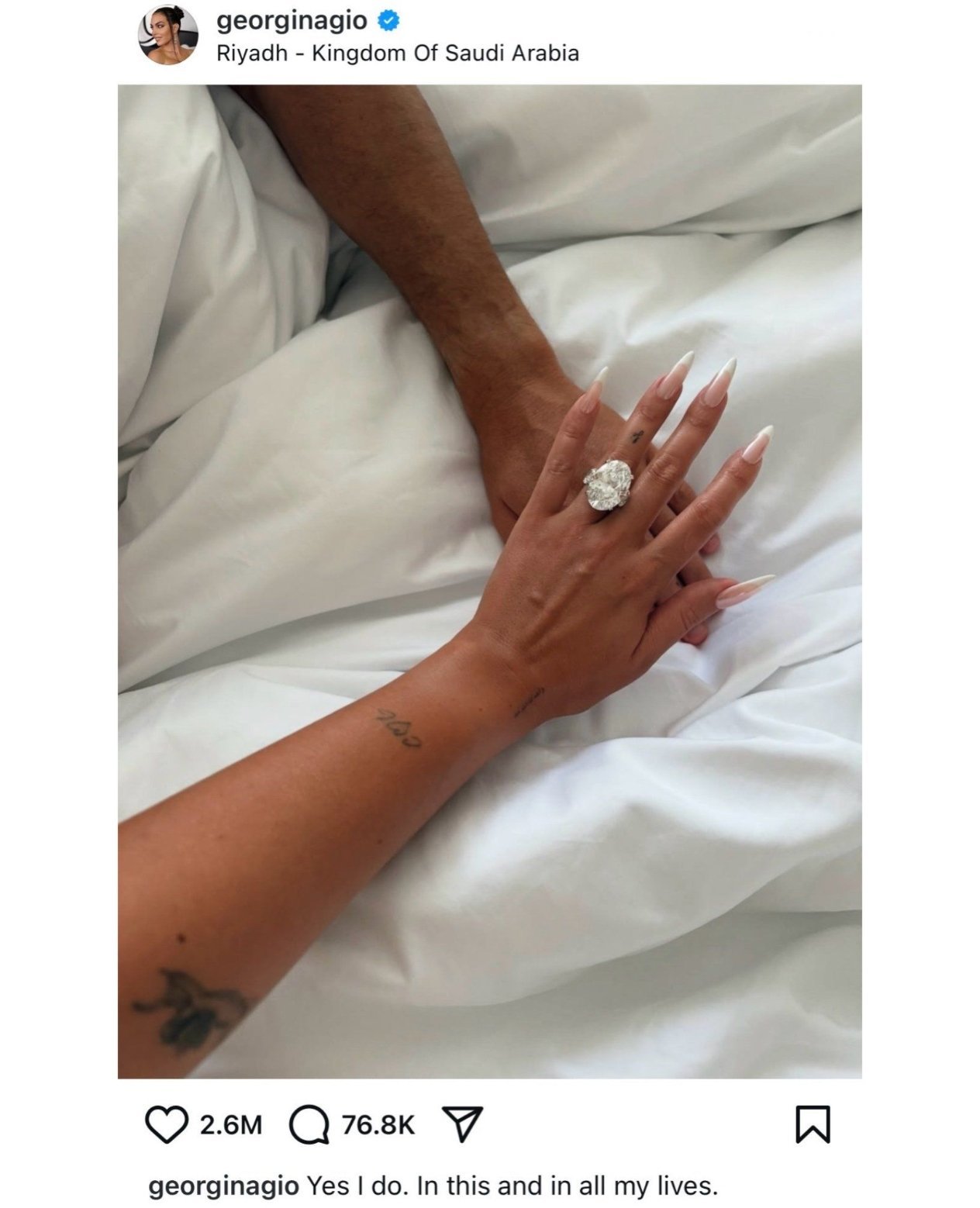 8月12日凌晨,40岁足坛巨星C罗正式向31岁女友乔治娜·罗德里格斯求婚成功!乔治娜在社交媒体晒出两人十指紧扣的照片,左手无名指佩戴一枚10-15克拉的“鸽子蛋”钻戒,并配文深情告白:“是的,我愿意,此生此世,生生世世。”钻戒采用经典三石设计,镶嵌于铂金底座,珠宝专家估值超100万美元(约700万人民币),顶级成色或达500万美元(约3500万人民币),瞬间引发全球网友“猜价”热潮。