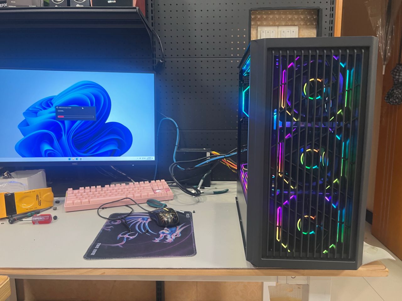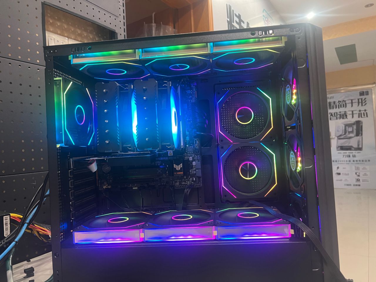 在海景房与侧透主机中间 这位盒友选择的侧透主机拉满12把2000转高性能风扇 颜值与散热拉满运行