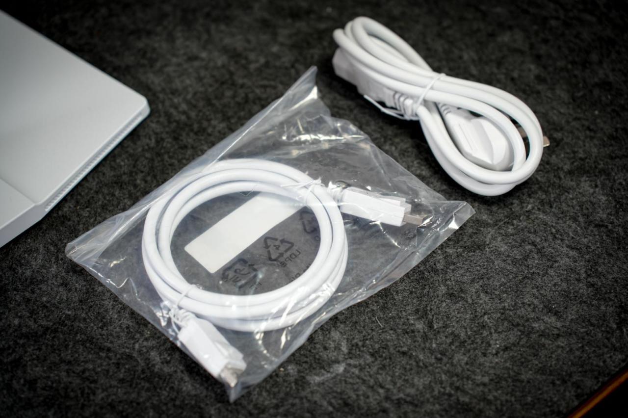 有趣的还有其配件,为了对应微星MAG 274QRFW X32白刃的白色外观,配套的电源线和DP线材也都是白色设计。