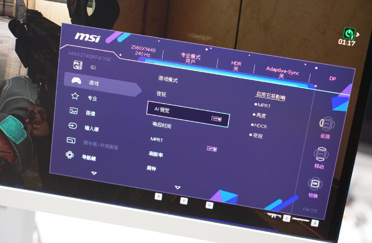微星MAG 274QRFW X32白刃显示器实拍效果如下: