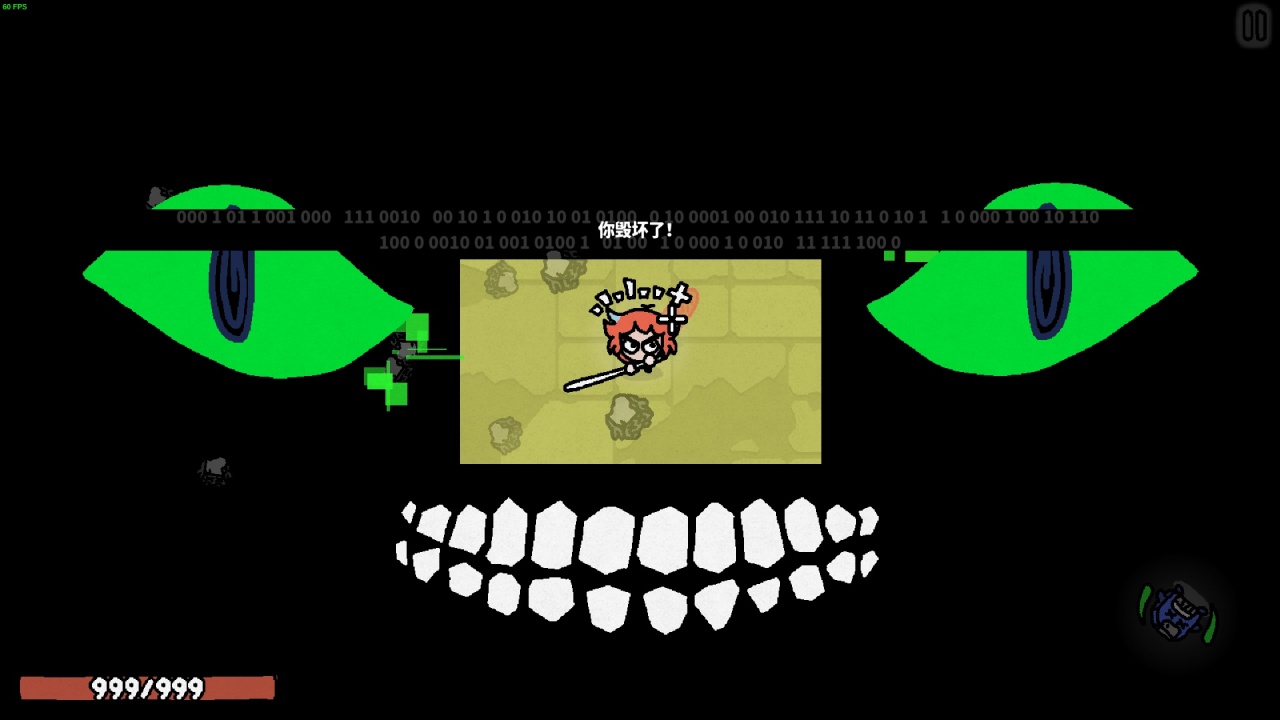 就在突破这层层弹窗阻挡消灭了所有敌人后,大的终于来了,画面中出现了一张诡异的脸,然后游戏直接“崩溃”弹到了桌面,点击确定后游戏重启,但是却进入了一个和刚才不同的主菜单。