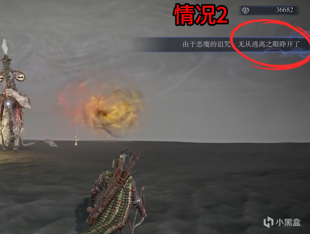 第二种,显示无从逃离之眼睁开了,在这个BUFF期间我们会随意累积发狂量表,直观显示为我们头顶会有一个黄色气团,只要变成铃铛形态,就会快速累计发狂条。