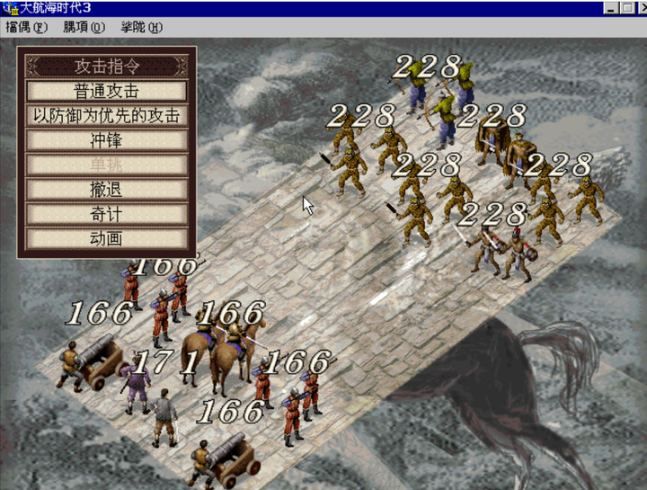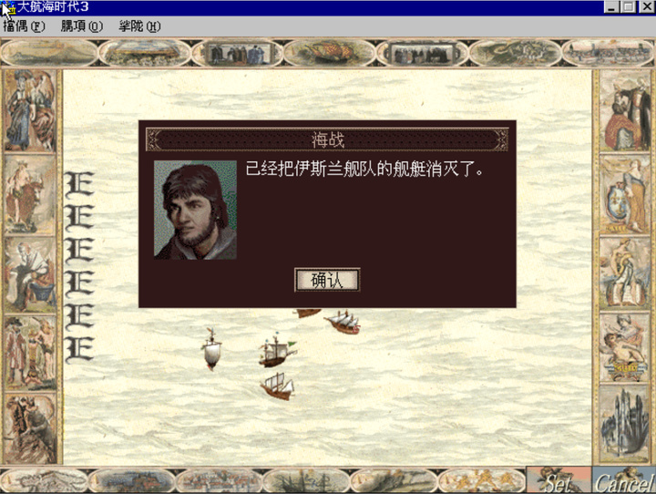 遊戲的海戰不負責,與2代類似,都是戰棋模式。白兵擊敗敵艦可以俘虜賣錢,擊沉地方旗艦就能取勝,遊戲中幾乎沒有特別難的海戰,有四艘以上當前最新的船隻,就足以應付所有情況了。