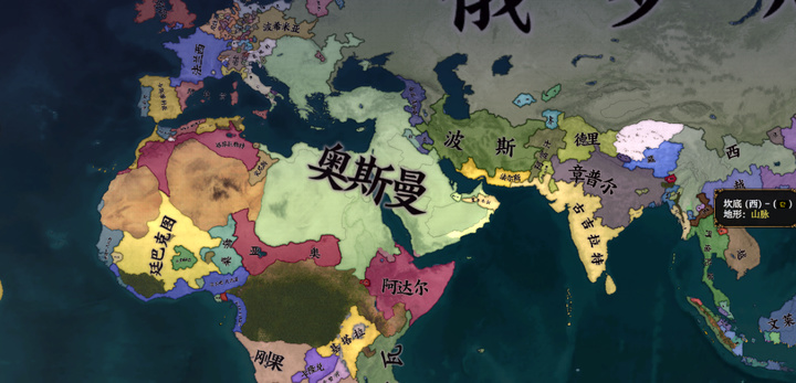 串場一張歐陸風雲4的截圖,不要在意各個國家的奇怪形狀,主要說明奧斯曼帝國的強盛是兩牙探索新航路的直接契機
