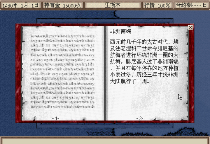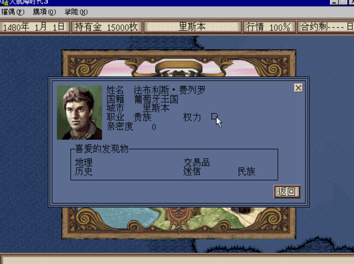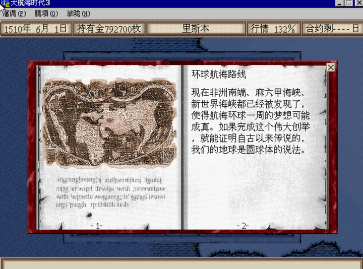 前幾天爲了搞清楚3代的一個走迷宮小遊戲獲得的金幣數量,重新找了遊戲確認,一不留神就把葡萄牙主角拉孟從1480玩到1510完成環球航行的官方結局。很多回憶又清晰起來,下面結合遊玩過程的截圖,以及官方攻略本的信息,聊聊這個大海是男人們的浪漫的世界吧,個別細節可能也有訛誤,還請見諒。