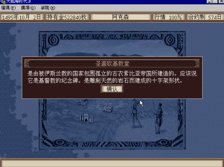 在港口花錢探聽到阿克森的經緯度,內地探險過去。阿克森就是阿克蘇姆。