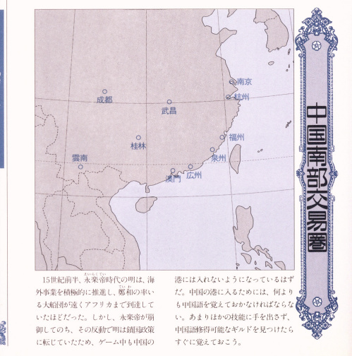 語言也很重要,很多冒險物的線索都需要特定語言,如果航行到了語言不通的港口,NPC的對話都會直接以“XXXXXXXXXXXX”顯示。一開始在歐洲活動還好,主角除了葡萄牙語和西班牙語外,羅曼語(拉丁語系)或日耳曼語會一門就可以。之後活動範圍拓展到歐亞腹地或者新大陸,各地的翻譯人才就必不可少了。