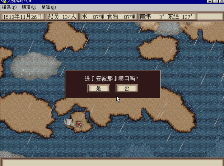 不過以後主角船多了,僱滿水手,也可以直接進攻城市,使之變成葡萄牙的同盟港,這樣就可以存檔了。(不過這次下載的版本是所有港口可以存檔,算是多了不少便利性,但也少了一些硬核的樂趣)