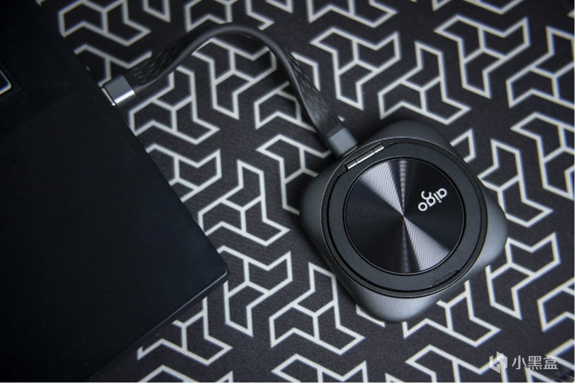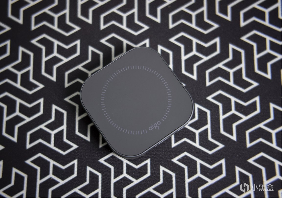 背面就是P5S的吸附層了,其用虛線的方式畫出了線圈的位置,底部則是aigo本家的LOGO,其在對於原生帶有磁吸功能的手機,例如蘋果系列以及各種帶無線充電功能的安卓手機,都可以提供一個非常不錯的吸附力(官方宣稱,其理論上可以達到600g),至於原生不支持的設備,配件中的引磁環效果也是非常不錯的,將其貼在手機背面的手機殼就好。