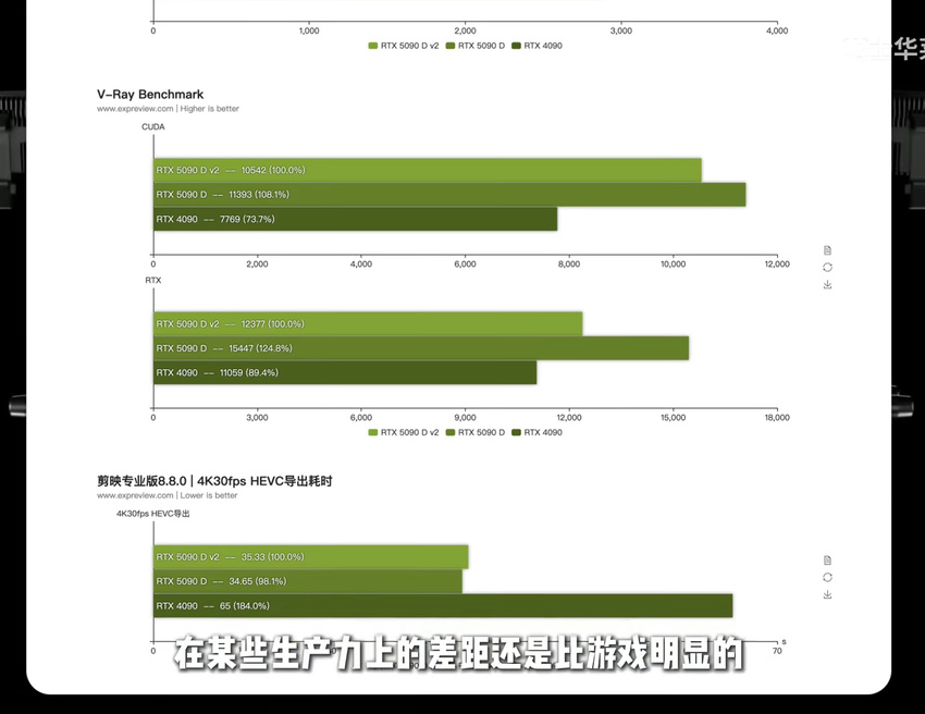總的來說,5090D v2弱於5090D但仍然強於4090,所以5080和5080 SUPER依舊與5090D v2差距較大。