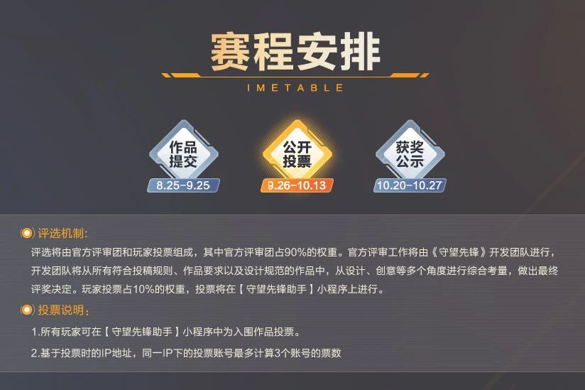 投稿方式等官方通知,投票方式將會在“守望先鋒助手”進行