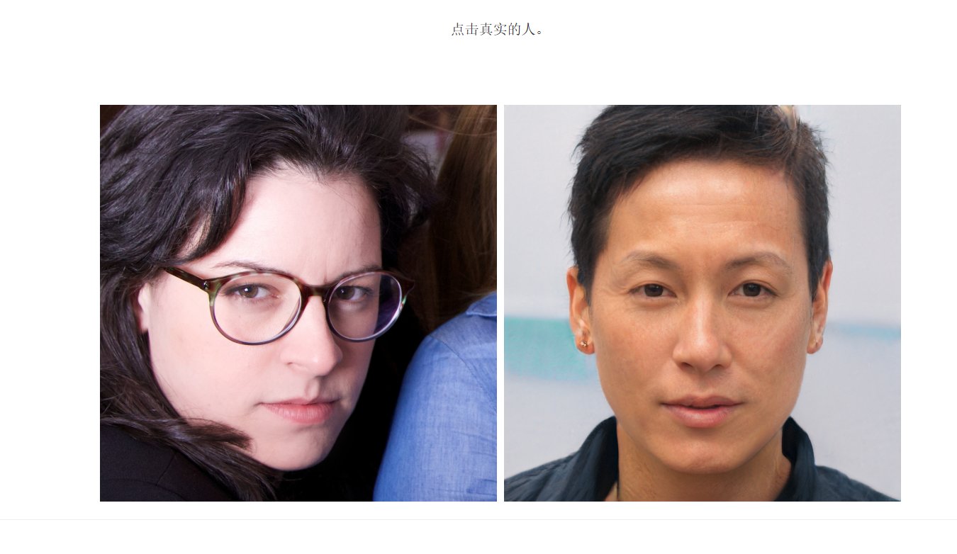他会给你两张人的图片,只有一张是真实的人,另一张完全由AI生成,我们要找到真实的人