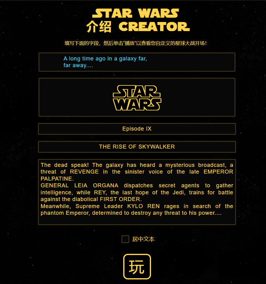 地址: https://starwarsintrocreator.kassellabs.io/