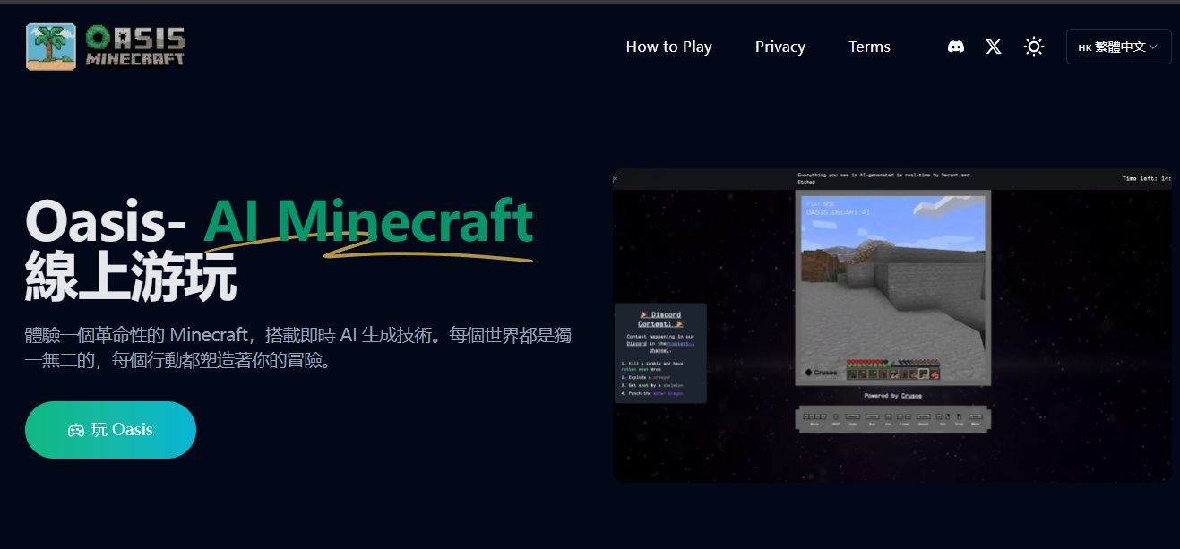 可以像正常一样玩我的世界,但游戏中的一切方面有AI生成,可能转个视角,一切都变了