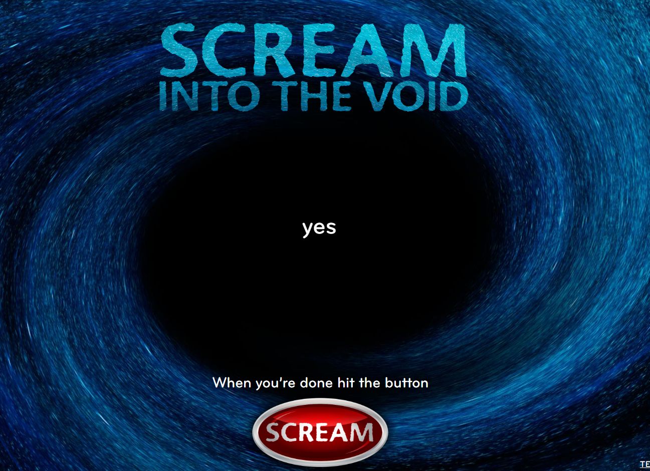 可以输入任何内容,然后点击下方红色尖叫按钮射进虚空