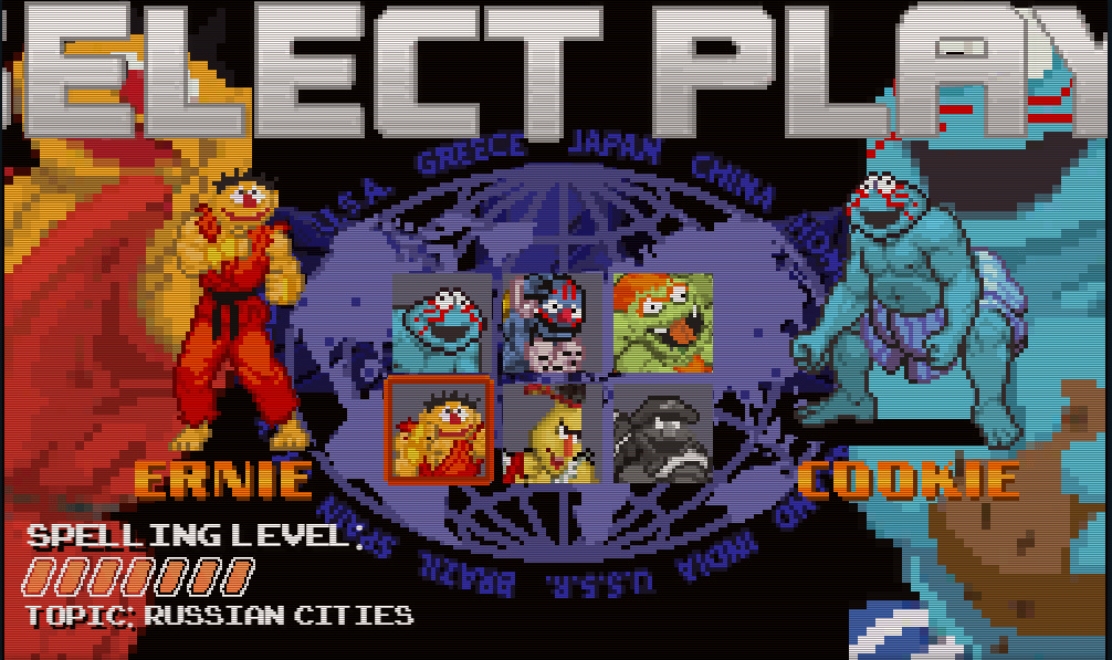 以《芝麻街》的角色进行街头霸王游戏