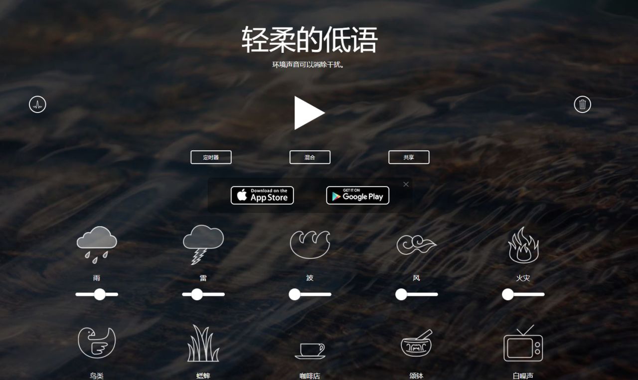 这里有多种自然与环境音效可以自由组合或调整音量