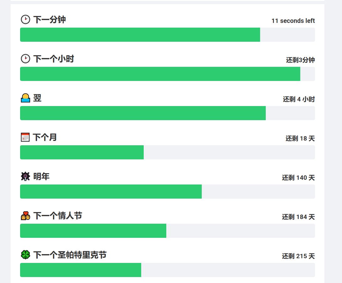 这个网站收集了许多实时的进度条,从日常生活到宇宙尺度,时间流逝的创意网站