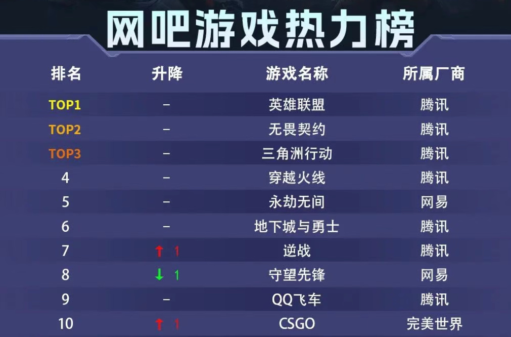 在今天财报会议上,腾讯表示《无畏契约》Q2季度日活创新高。而据国内网吧热度榜显示,游戏超越了一众老牌产品,已经连续大半年稳坐榜单前二位置,其受欢迎程度自然不必多说了。