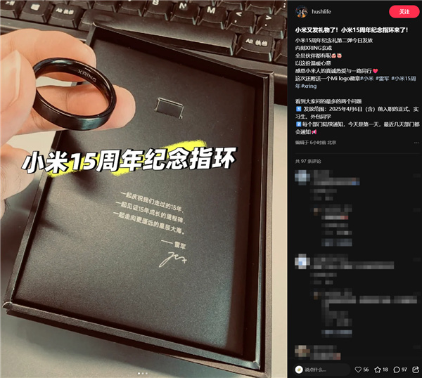 快科技8月14日消息,今年是小米创办的15周年,小米行政官微日前晒出小米15周年礼——一枚刻有“XRING”字样的戒指。