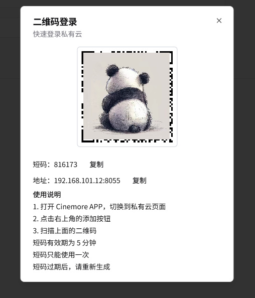 下載客戶端,登錄可以直接通過後臺的二維碼登錄,這一點非常方便,省去了手動輸入IP、用戶名與密碼的過程。