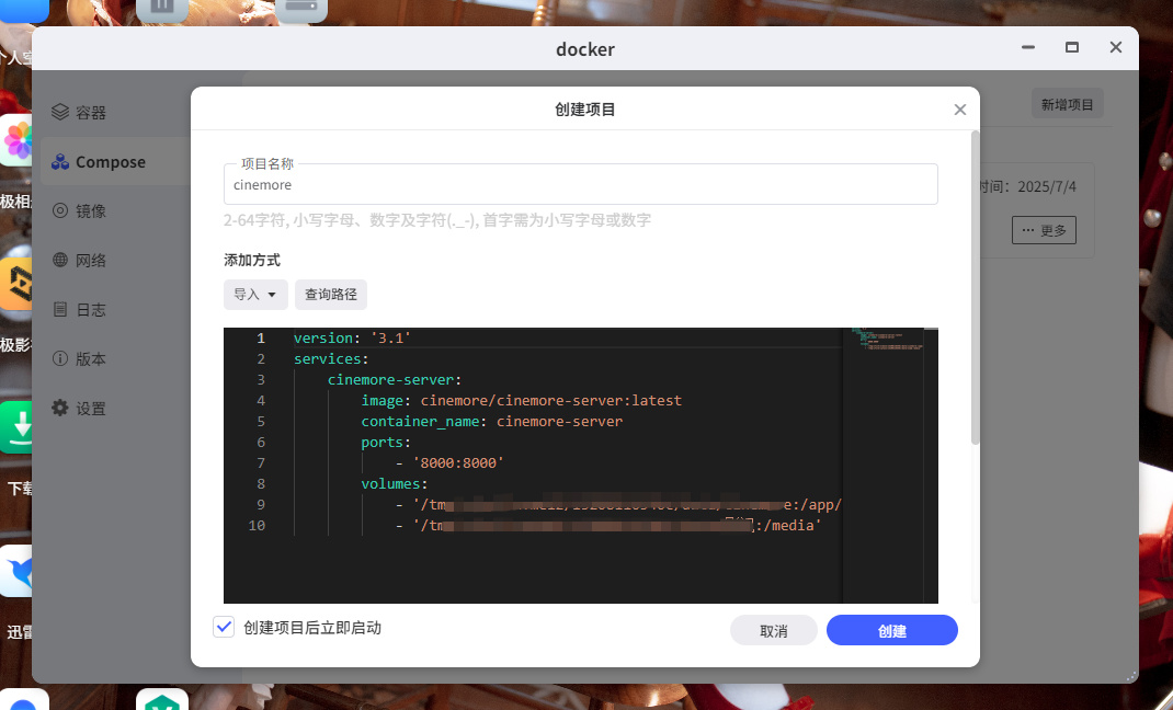 Cinemore支持NAS部署,且部署非常簡單,只需要映射端口、配置文件以及媒體庫就可以,相比較Emby與Plex這些操作方便很多,很適合小白上手。這一點蠻不錯的。