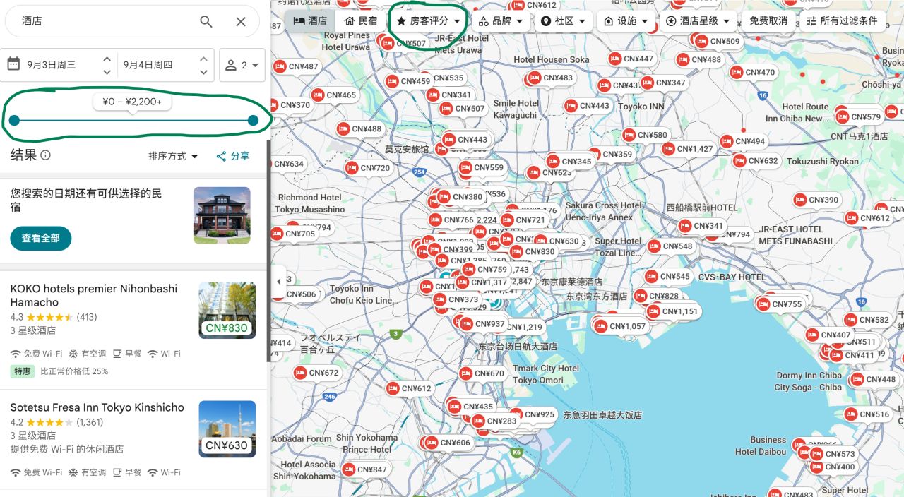 ②關注酒店的評分:比較建議看google地圖的評分,相對客觀。谷歌地圖上日本酒店的評分最好是4.0以上,4.5以上算風評很好的(要麼是酒店新+服務好,要麼是性價比很高)。可以直接谷歌地圖篩選4.5以上的酒店,很難踩坑。最後,看看最近幾個月的評價,有沒有普遍的惡性評價。