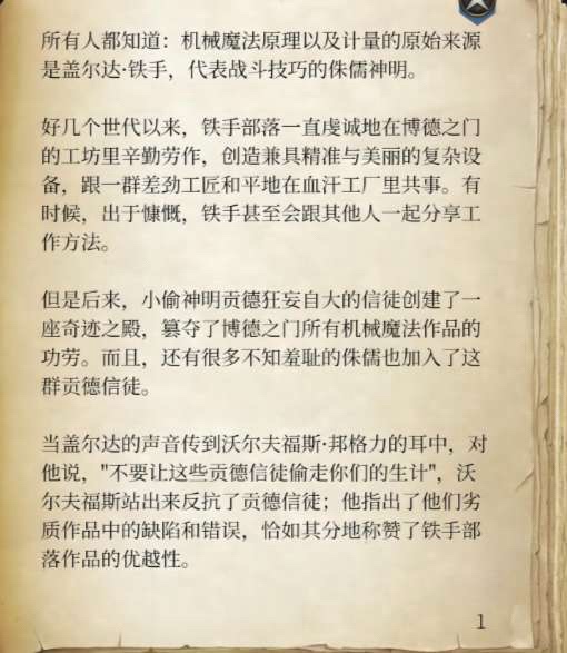 以上都是铁手侏儒的一面之词,事实如何呢?咱也不知道,因为博德之门前作里根本都没提过铁手侏儒和贡德信徒的事情。权当这就是事实吧。