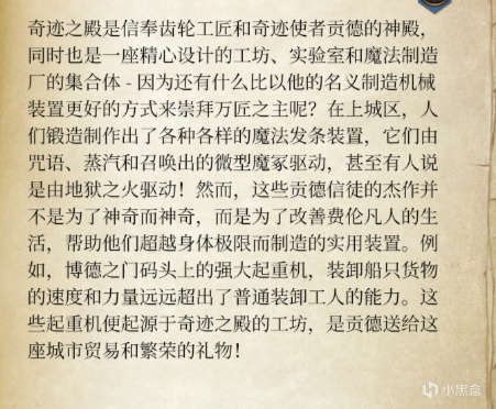 博3剧情里花了大篇幅去讲的钢铁卫士工厂、印刷厂、钢铁王座部件以及潜水艇都是贡德信徒(时常在戈塔什的胁迫下)制造生产的。甚至连码头的起重机都是贡德信徒发明的。咱们贡德信徒有力量哇……
