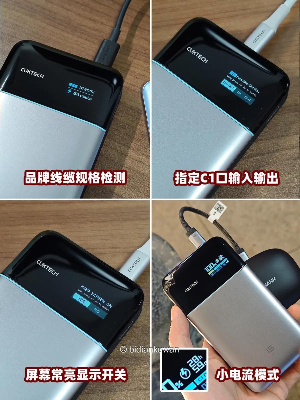 喜欢酷态科TFT屏显的都知道这个屏有多强,各接口实时功率、剩余可消耗/待充满时长,电压电流等状态一目了然,还支持小电流模式,屏显常亮,线缆检测。
