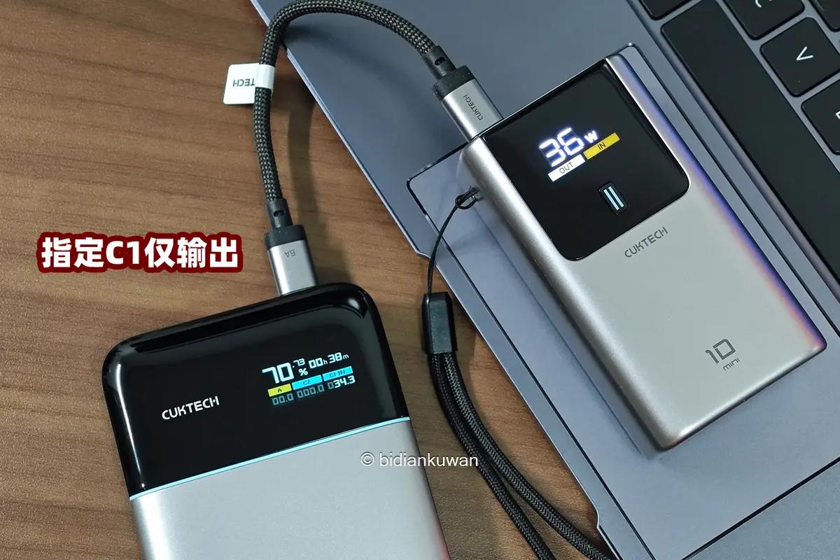 ▼指定C1接口“仅输出”,可以满足下图这类“互充场景”的测试需求(用15号AirC1口给10号MiniC1口充电,电量56%,实时快充功率为36W)。