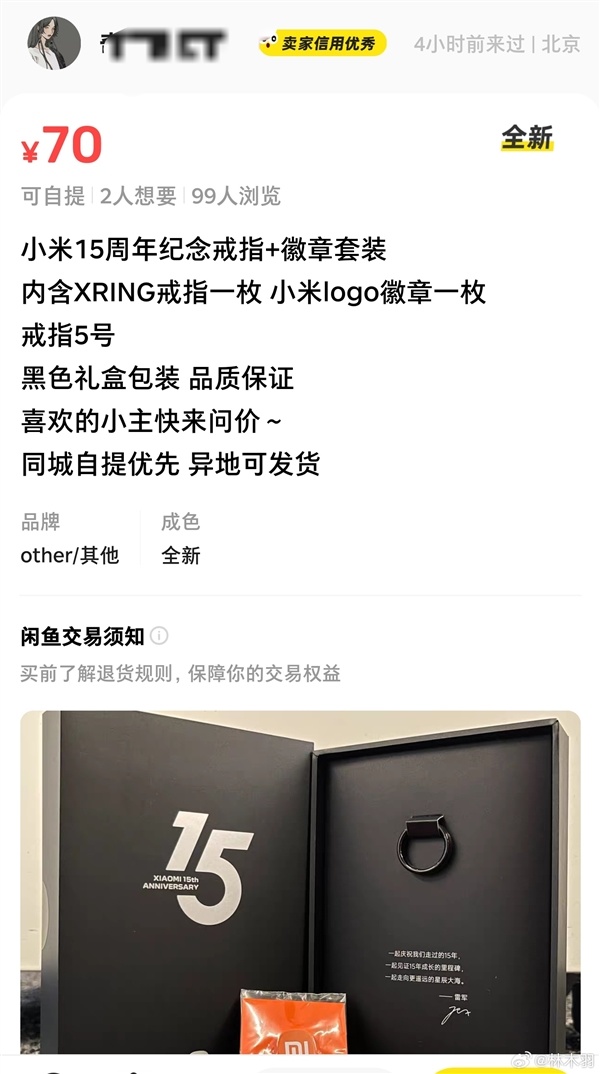 评论区有多位米粉留言表示,他们从闲鱼上也购买了同款玄戒戒指,价格从60-90元不等。