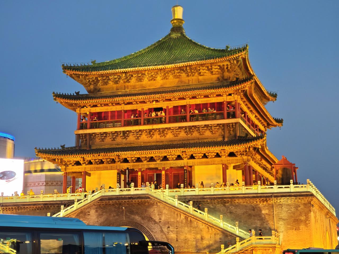 今天下午睡到五点半,六点才出门,去了钟楼和鼓楼,两个景点联票五十元。建议去钟楼就行了,因为钟楼所在的地方是个环岛,景色比鼓楼好。钟楼有钟,鼓楼有鼓,其他的两个楼都差不多。