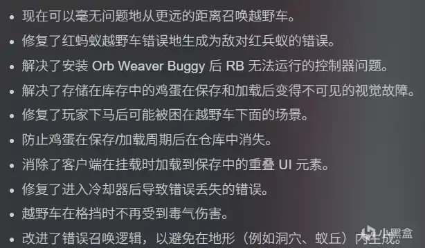 更远的召唤距离,以及一些BUG优化,让越野车真正成为了随叫随到的可靠载具!