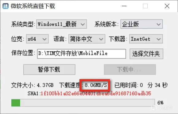 用户可自行选择家庭版、专业版、教育版或企业版,然后设置保存路径,点击下载即可开始。实测下载速度可达8MB/s