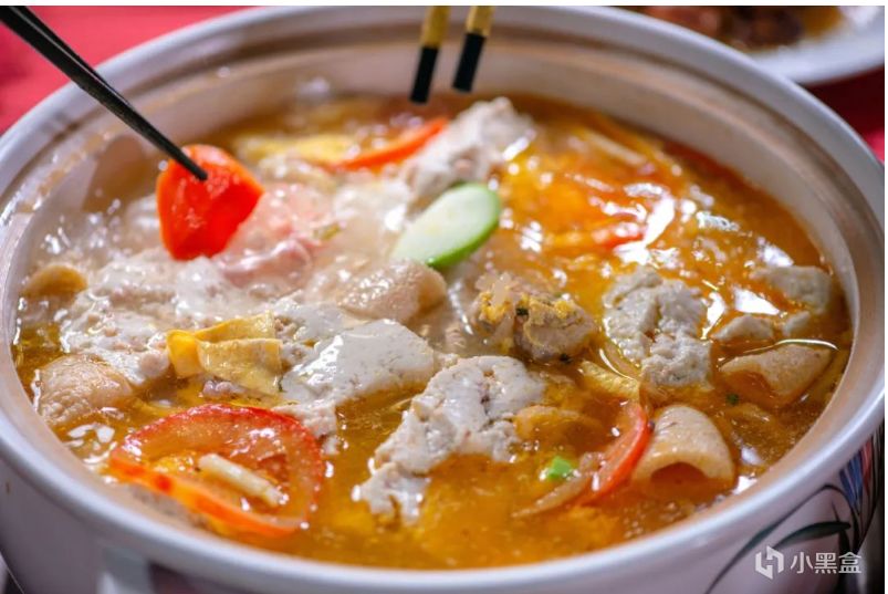 酸汤鱼是贵州黔东南苗族的传统名菜,早在宋代就有以“酸汤”为底的烹鱼技法。苗族人素来有“无酸不成席”的说法,尤其在节日、婚宴、或接待贵客时,酸汤鱼几乎是必上的主菜。 这道菜以自制米酸或番茄发酵酸汤为汤底,搭配鲜活鱼,口感酸中带辣、鲜中透香,能瞬间唤醒食欲,是名副其实的“下饭神器”。因其制作方法简单、美味可口、食后开胃、味美汤鲜,现已延伸到酸汤鸡、酸汤鸭等。酸味菜肴近年来还走出苗岭深山,在许多大中城市成为一道独特的饮食风景线,并已越来越受到人们的欢迎。