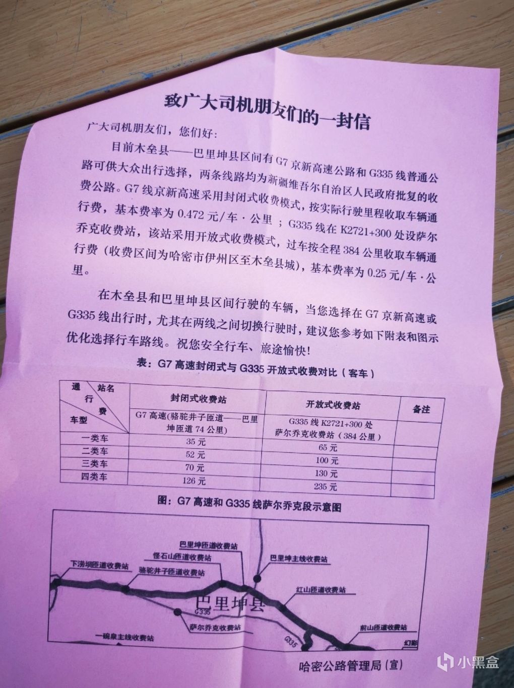 不过有一点要注意,新疆的一些国道也是收费的,这里要感谢盒友白洚提供的路线建议(阿里嘎多折叠屏式鞠躬感谢),如下图所示。