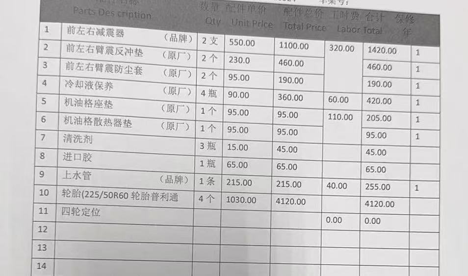 索性,大河就直接贴上当时的修理厂清单,给各位计划长途自驾游的盒友参考。