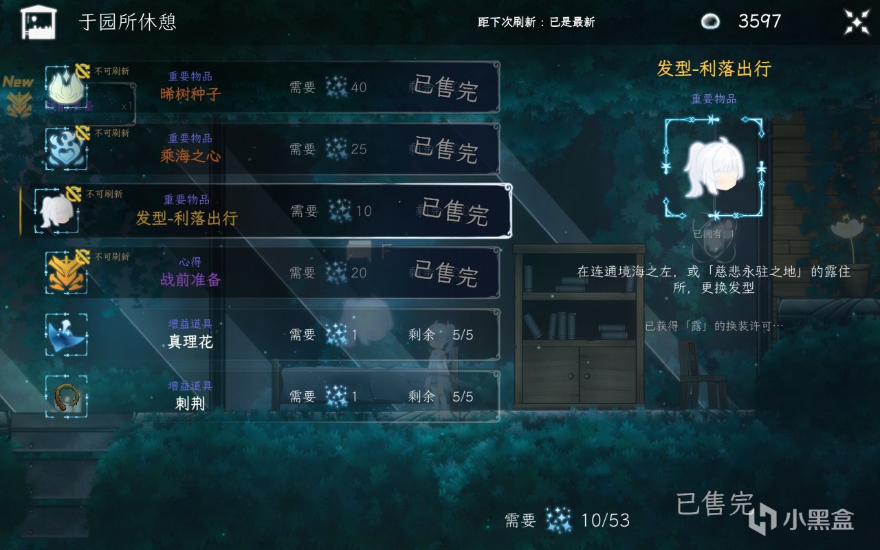 部分商店界面,可以购买发型等装扮类道具,对于我这种喜欢搭配立绘的玩家来说,体验就挺不错的,开荒的时候还是看着可爱的立绘玩得舒服!