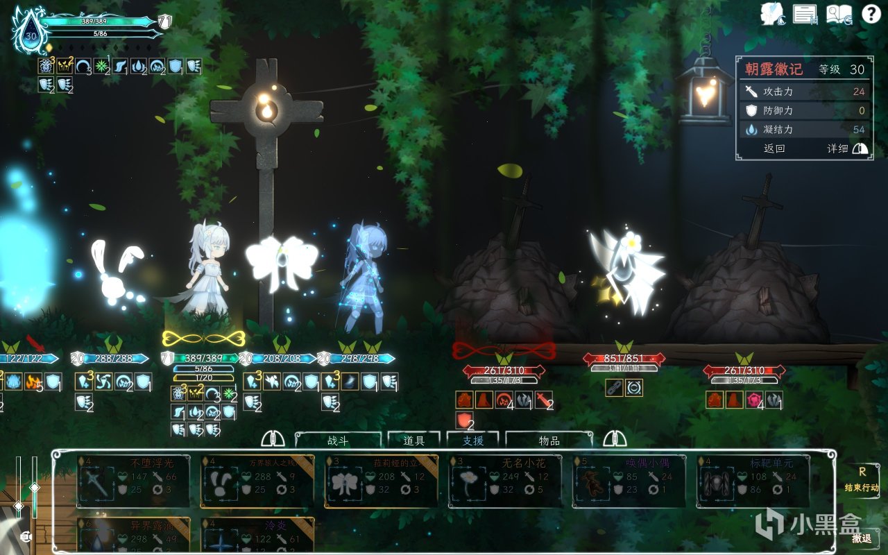 决意点(上限为20),切换姿态、召唤支援、使用道具时消耗,某种程度上比蓝量更重要,可以说决意点支撑起「露」战斗中的大多数玩法。