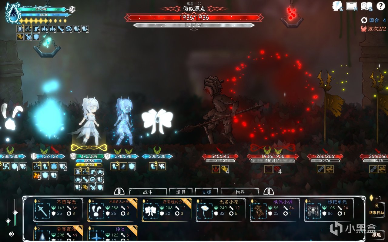 通俗点的说法就是召唤物,露最多可以召唤四个支援,露前后排各可以放两个。敌人最多存在四个,也就是说敌人满四个后,部分特殊能力的支援就放不了了,同理,也可以拿支援来占对面格子,来克制一些召唤类的怪。