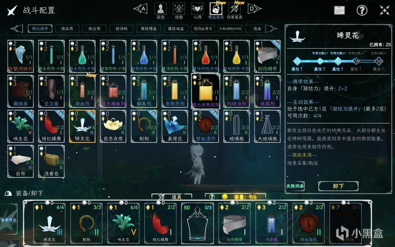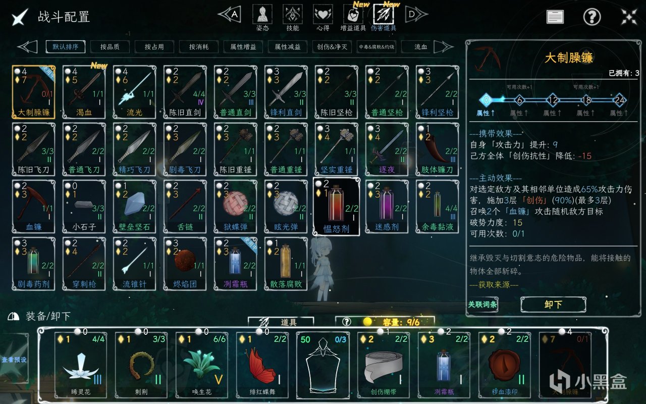 道具分为增益道具和伤害道具,具有携带效果以及主动效果,释放消耗决意值来释放(道具容量机制同心得)。
