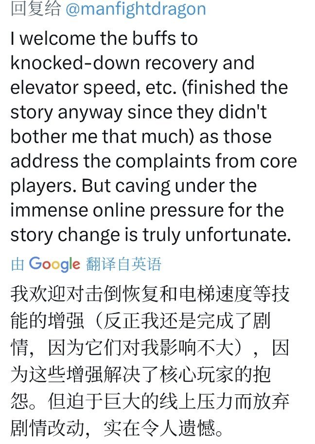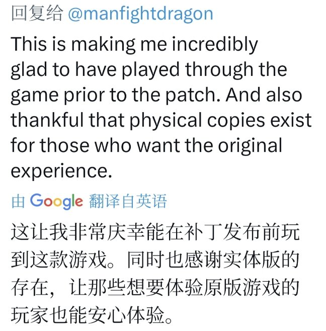 翻了一下外国网友对这次更新的评论,大部分对此有意见,很多庆幸自己入手了实体版,因为这些增强解决了核心玩家的抱怨。但迫于巨大的线上压力而放弃剧情改动,实在令人遗憾。