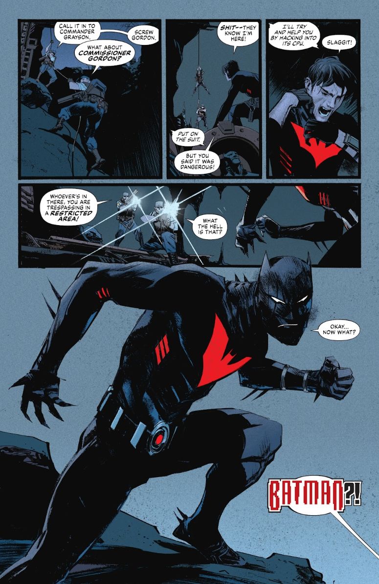 某天,曾經的蝙蝠洞中,一個年輕的毛賊泰瑞通過某人的指示潛入,盜取了老爺還是蝙蝠俠時研發的“史上最強大的戰衣”,並穿着其逃竄。