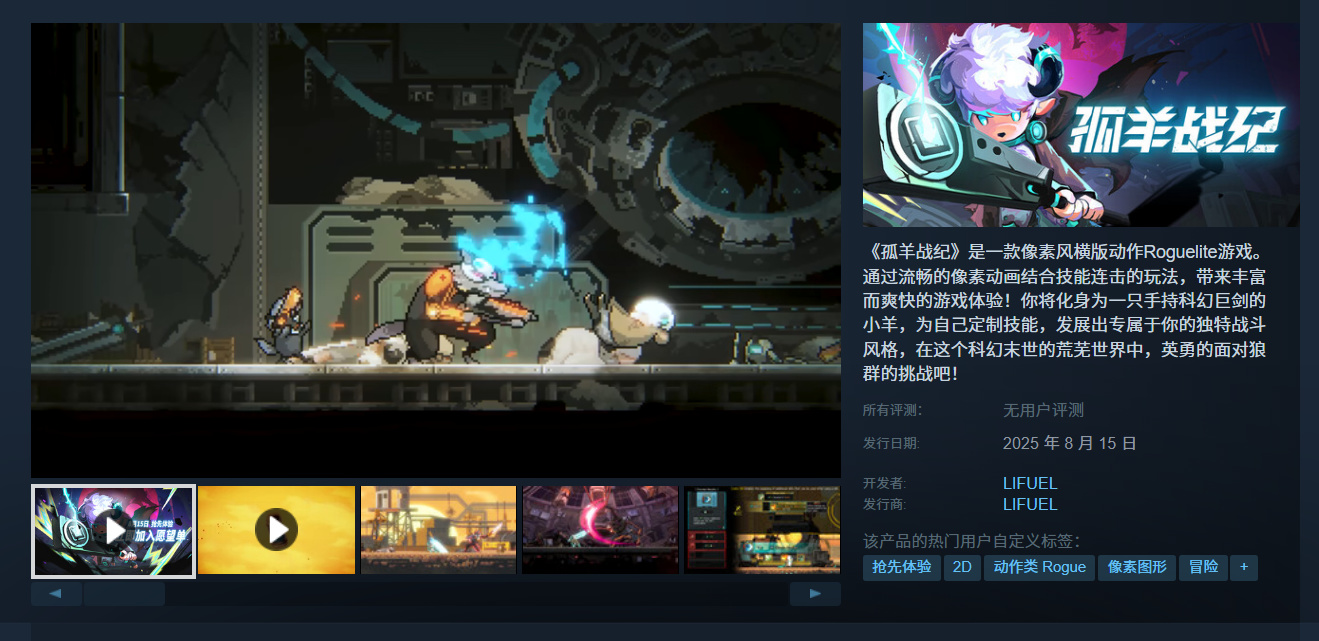 挺期待的一款橫板動作Rogue遊戲,去年的時候試玩過免費的Demo,整體玩法和創新內容還是挺喜歡的,目前正式版估計也會衝一下首發,操作下來相當的流程不過像素風格得看大家喜不喜歡了。