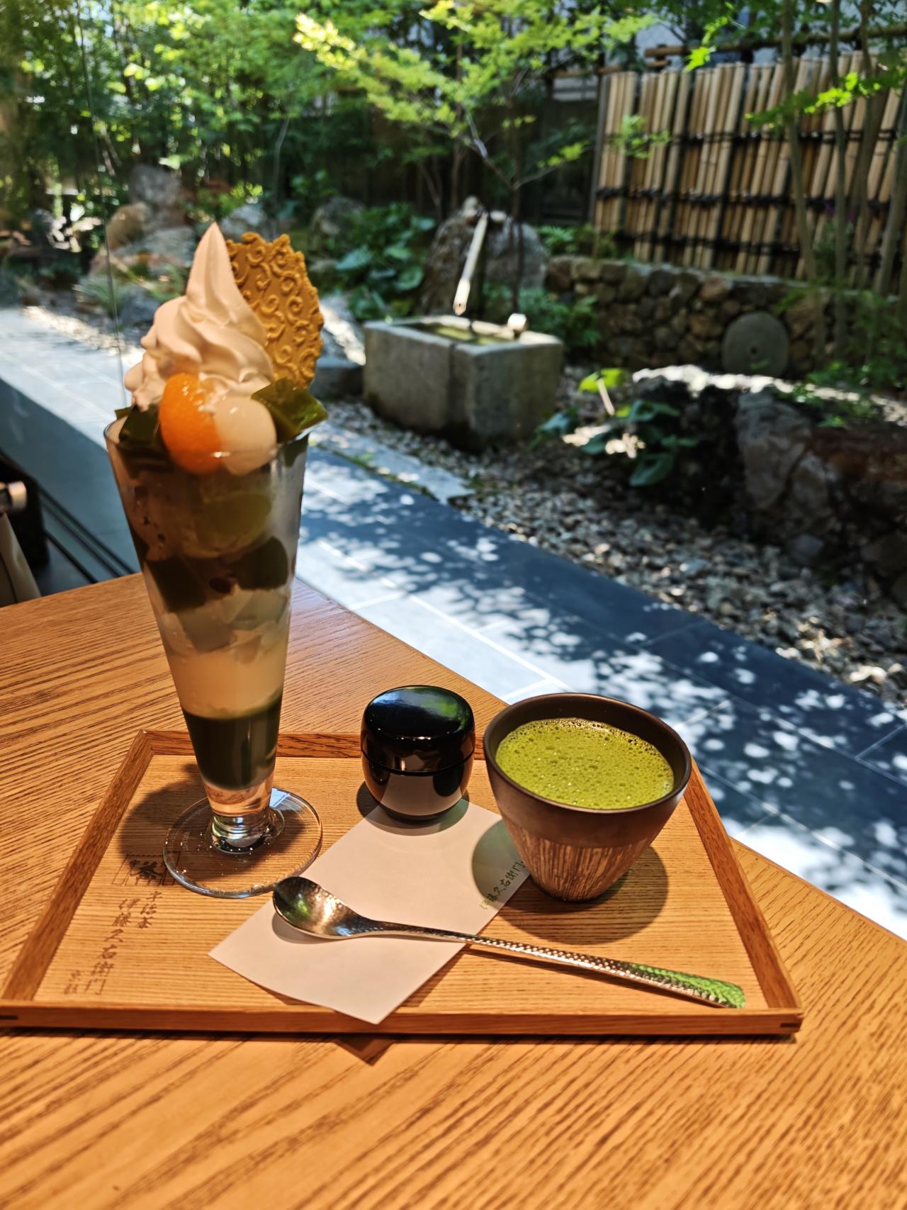 在宇治尤其能喫到各種抹茶點心,隨便找家店都能體驗抹茶一條龍。有抹茶芭菲、抹茶拿鐵、抹茶麪等等