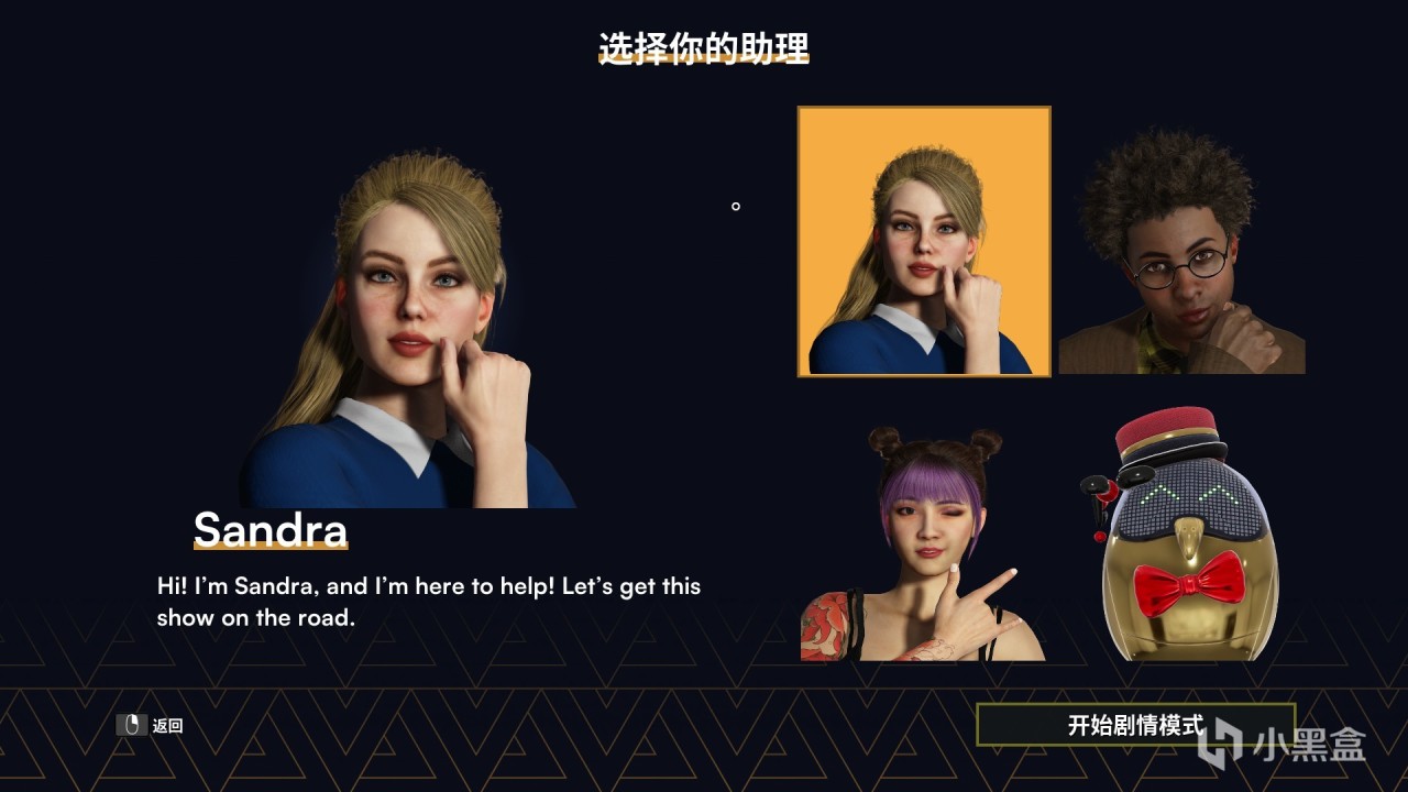 一开局,从四位形象各异的角色中选择一位助手,en~这国外美女,国外帅哥,选哪个好呢? 算了,在这快递都由机器车,外卖由外卖机器人送餐的时代,咱们也紧跟潮流,选个金蛋机器人开始游戏吧!