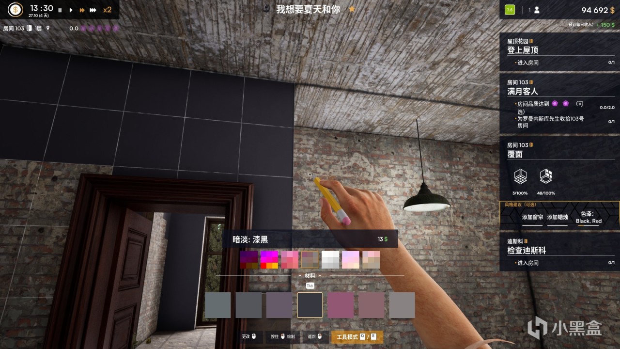 让我们一起给世界涂色吧!地板、墙壁、天花板,选择你喜欢的花纹、样式,自由发挥。